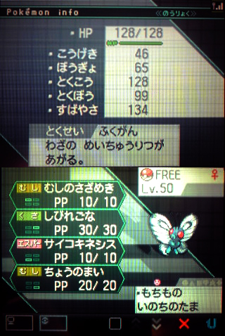 持ち物がいのちのたまなのは、バタフリーでも活躍できるんじゃないかという願いを込めて…